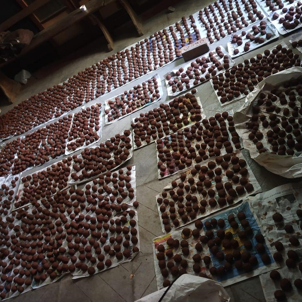 A seed ball is made of a variety of seeds rolled up with clay, manure, and compost which helps increase the natural flora. Since 2019, our volunteers have made more than 5000 seed balls.